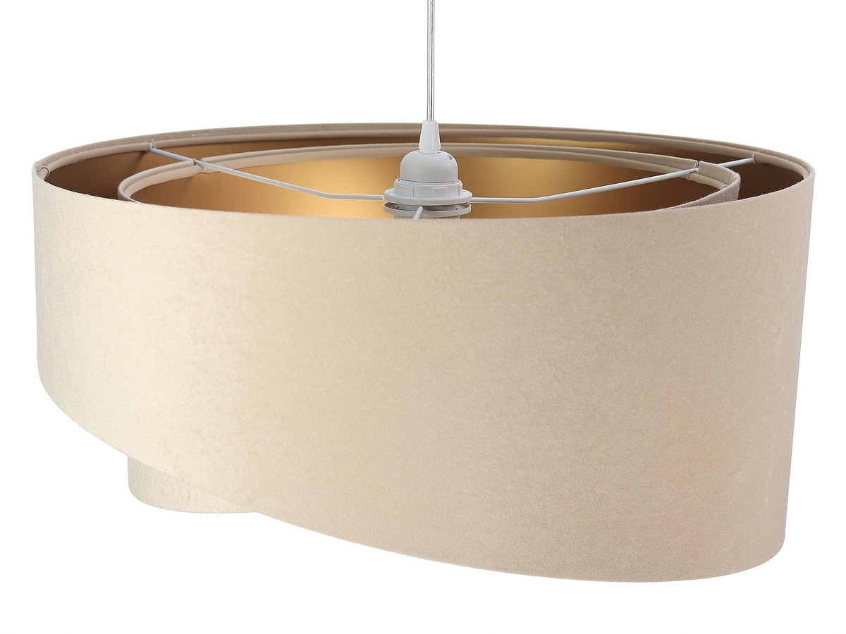 Beige pendant lamp with round asymmetrical velour lampshade with gold interior - SAMANTHA