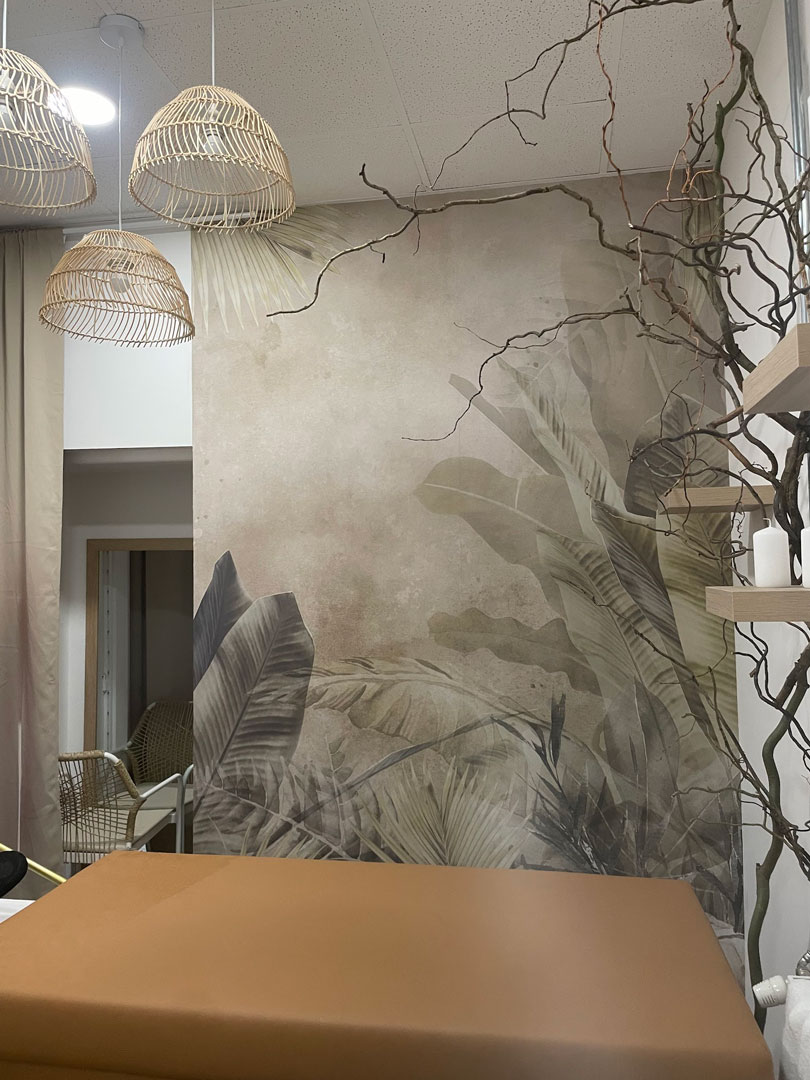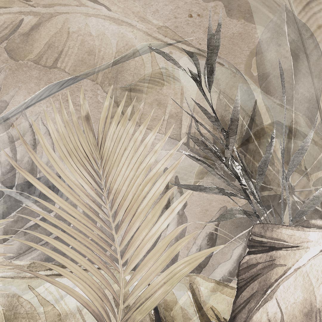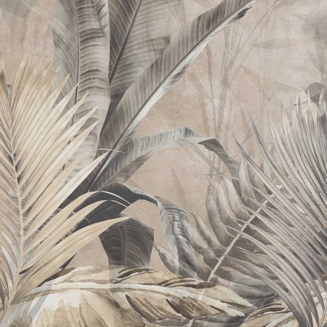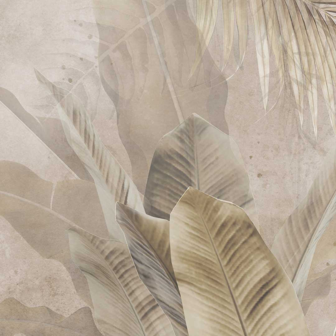 Beige wall mural, photo wallpaper: jungle, palm and banana leaves, boho style All wallpaper