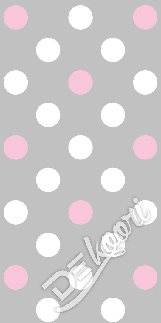 Fashionable and decorative grey wallpaper with bid dots in white and pink colours.
