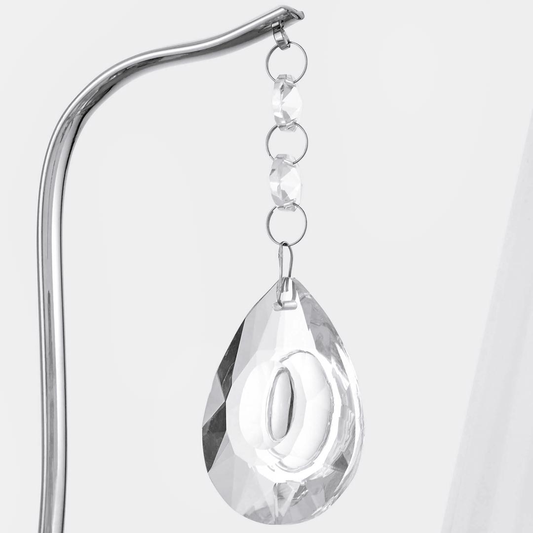 Single white and silver wall lamp - FINEZZIA W1. This metal chrome wall sconce in a classic style is decorated with real crystals hanging on chains.