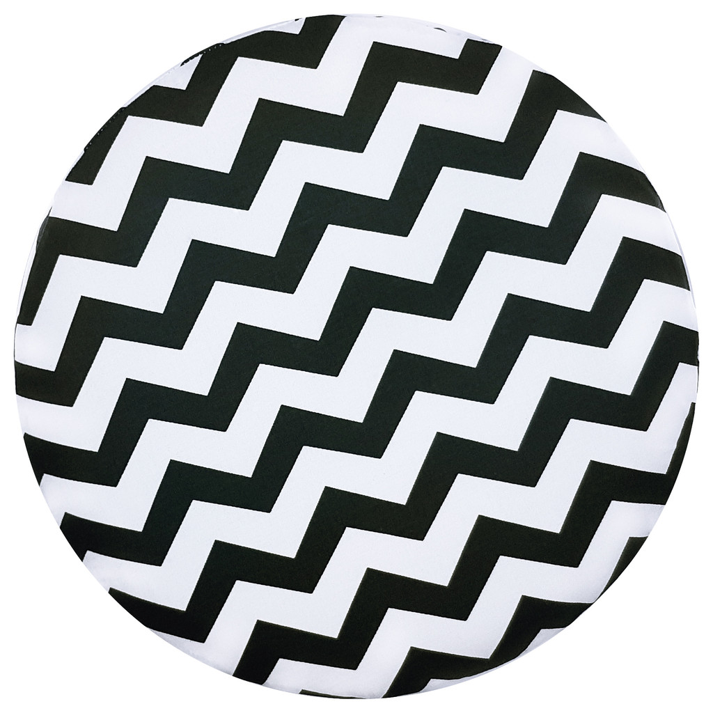 Fashionable pouf white and black with ZIGZAGS wooden stool for sitting