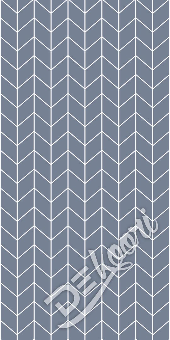 Geometric wallpaper in chevron herringbone in unique colour of smoked blue with white pattern contour. This wallpaper is preserved in modern Scandinavian, vintage, loft style.