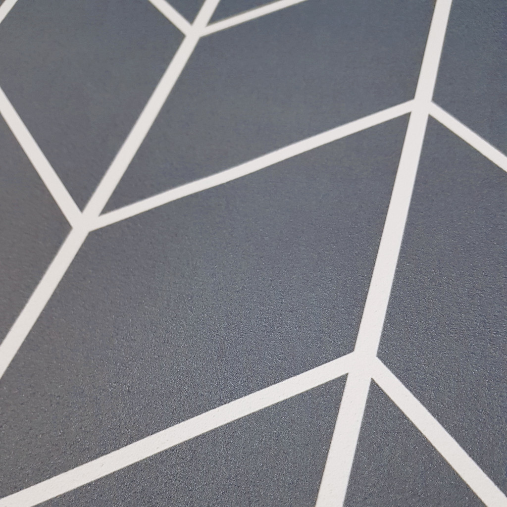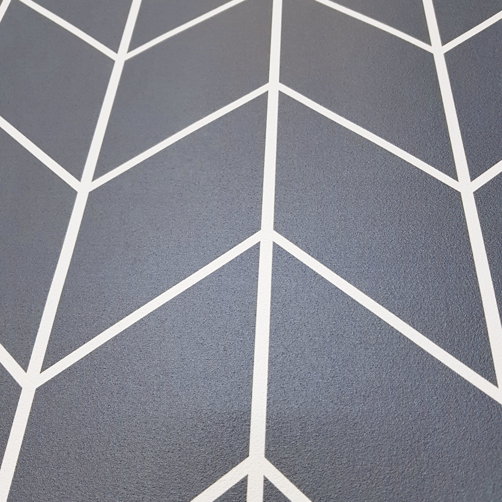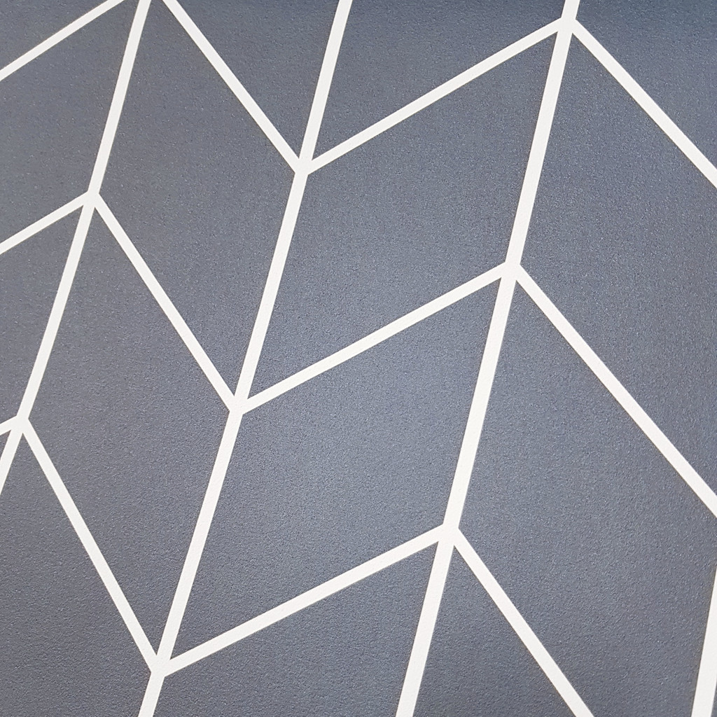 Geometric wallpaper with blue and white herringbone