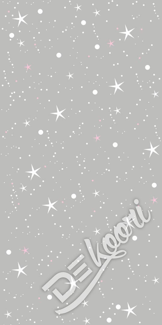 Decorative grey wallpaper with pattern composed of white and pink dots and stars. Wallpaper is washable and you can use it in any rooms. Certainly it will work great in children's or youth rooms.