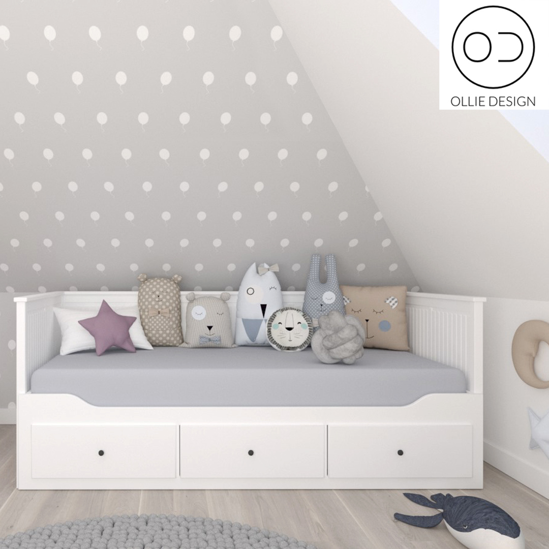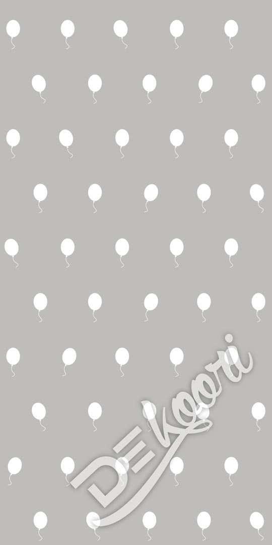 Grey and white wallpaper with balloons. Unique object pattern will great work in e.g. children room. Some balloons are slightly turned in left or right which diversifies the pattern.