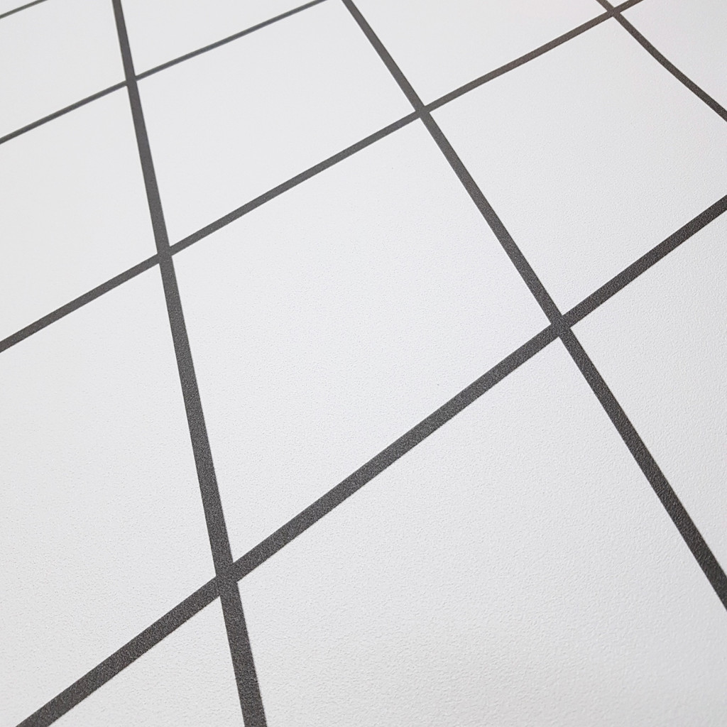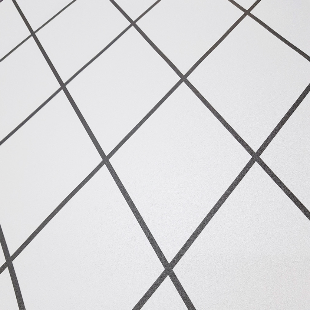 Loft white wallpaper with grey, graphite pattern NET, diamonds, contour