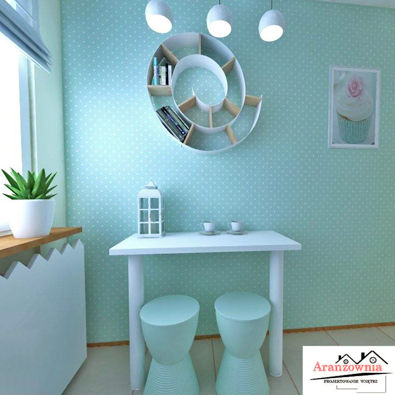 Classic mint wallpaper with small white dots. Wallpaper in mint colour represents polka dots retro vintage style.