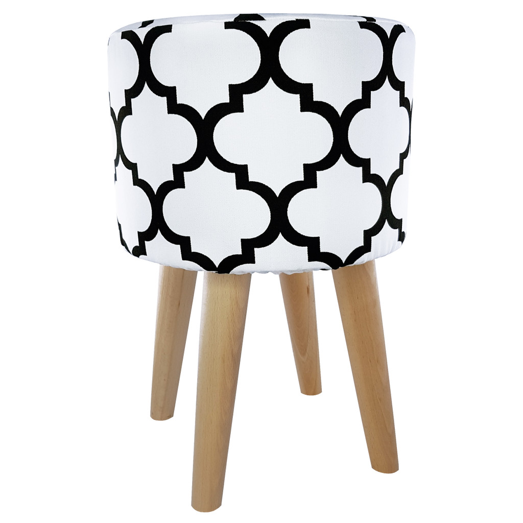 Modern Scandinavian loft pouffe with a seat with the pattern of (black and white) Moroccan clover.