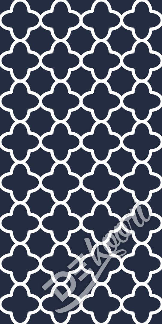 Dark, navy blue wallpaper with Moroccan pattern. Oriental, white ornament on a navy blue background.