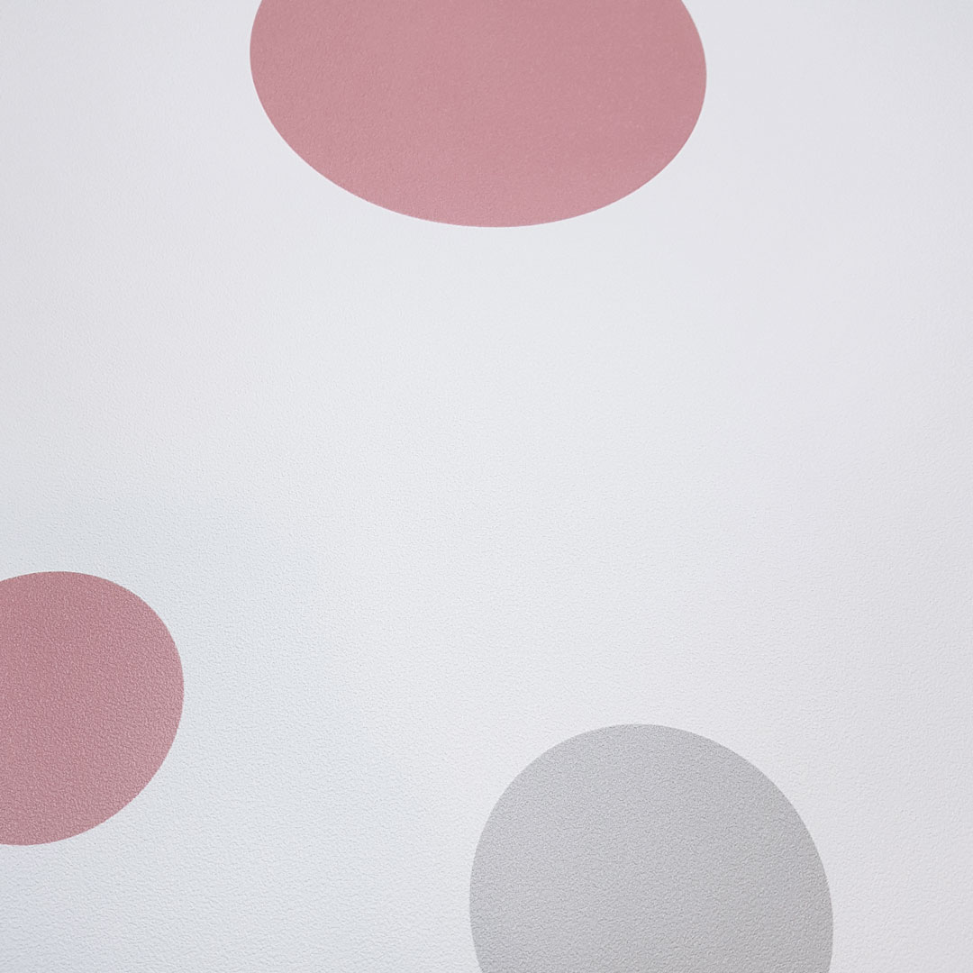 This stylish, bright wallpaper with a very light, bubble pattern in pastel shades of dirty pink and grey will be the perfect addition to any children's corner, but would work just as wonderfully in a minimalist bedroom. The bubbles come in different diameters - 5, 8, 10, 14 and the largest even 18 cm - which makes the wallpaper even more pleasing to the eye. Thanks to the material from which it is created, it is washable and more resistant to abrasion and cleaning!