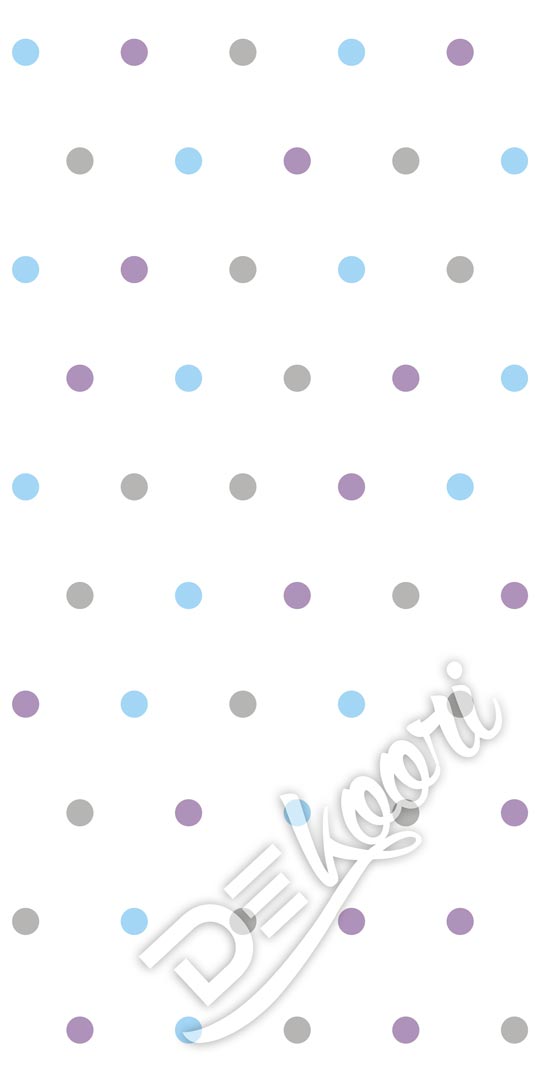 Wallpaper with grey, blue and violet 5 cm dots