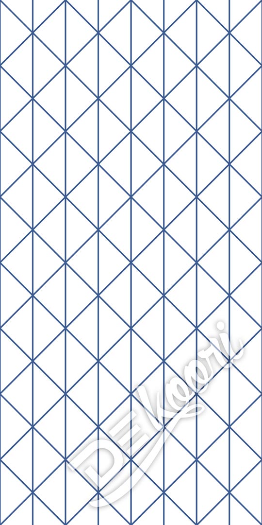 Unique white wallpaper with modern pattern - triangles and lines - in fashionable Classic Blue colour. This colour was chosen by Pantone band Colour of the Year 2020. The wallpaper perfect will work to living room, bedroom or kitchen.