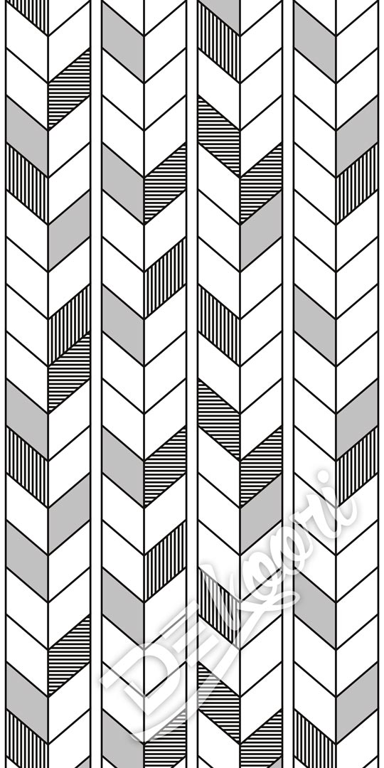 Black and white wallpaper with herringbone pattern. Designer, scandinavian project, contour in boho style to modern interiors.