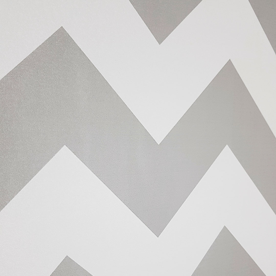 Geometric and decorative white and grey wallpaper with chevron. Very trendy, modern pattern and toned colour.