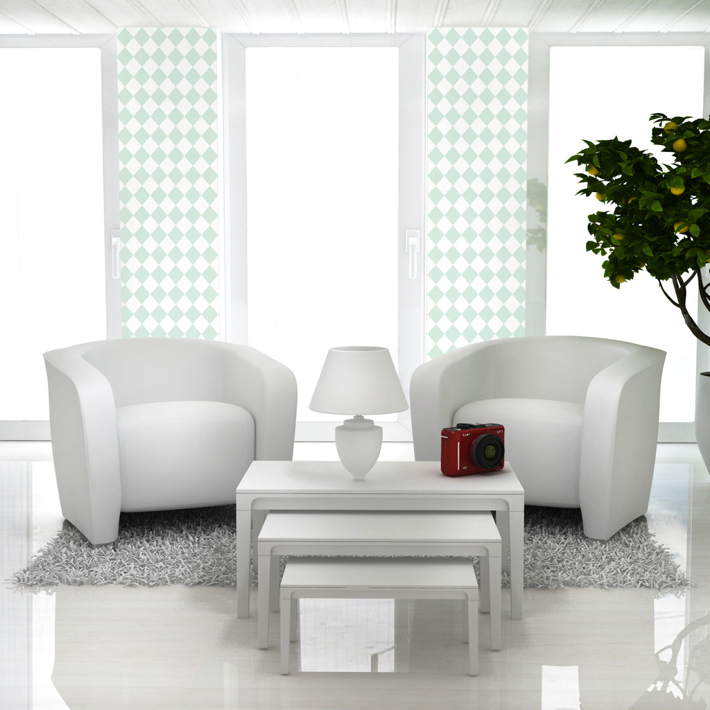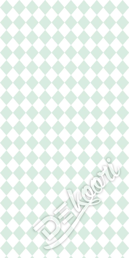 Popular wallpaper with small white and mint harlequins. Very trendy geometric pattern printed on solid photo paper. Bright mint shade is more and more often used for decorate interiors last years.